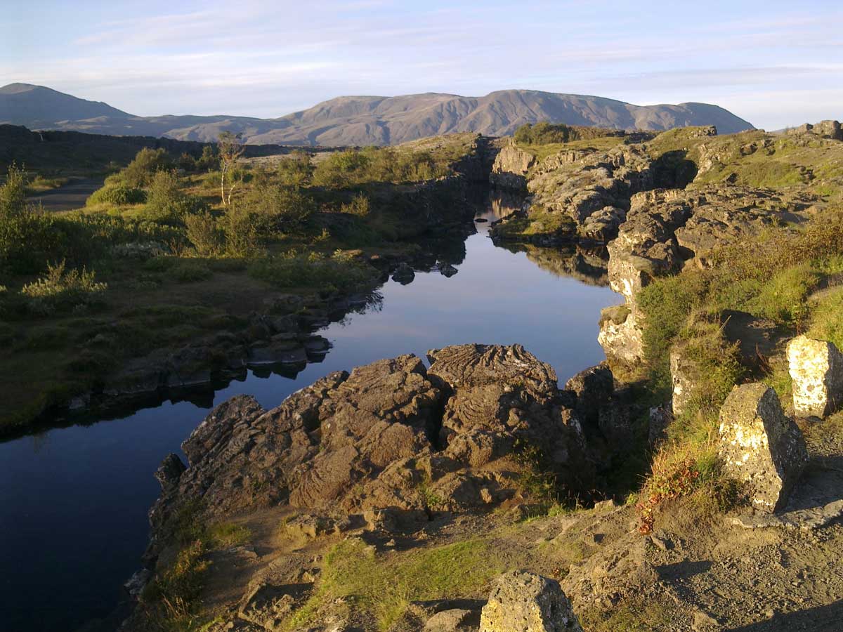 Den tusenåriga demokratin på Tingvalla, här samlades de i juni varje år. På förkastningssprickan mellan kontinentalplattorna, den västra och den östra
