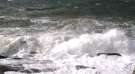 Kransbinderi i skymningsljuset från fönstret. Kattegatt där utanför.