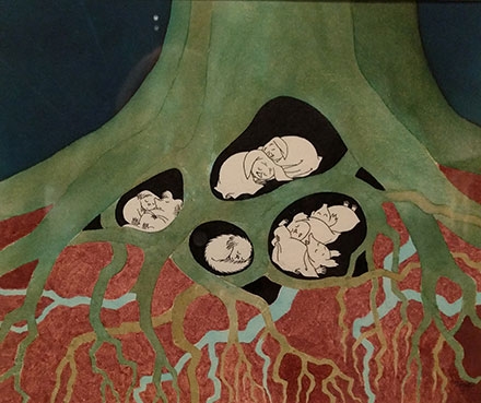 Vår vän Niki som arbetar för The High Commissioner for Human Right på FN i New York hälsade på oss i Bua i somras. Vi kom vi att tala om konsten i FN-högkvareret och hon sa: Den kan jag visa er!