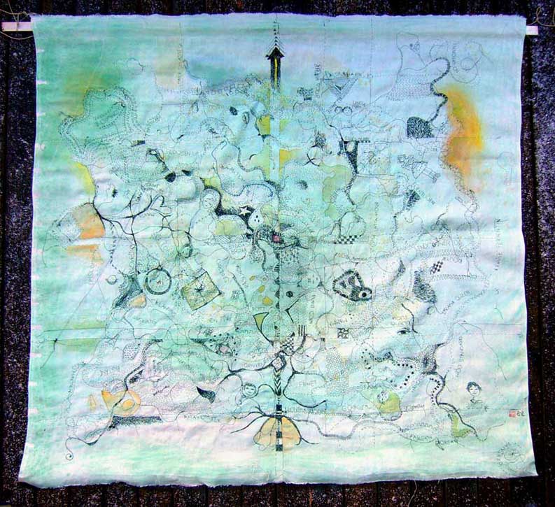 2012, 110x120. Sytråd och måleri på gammalt linne och sammet